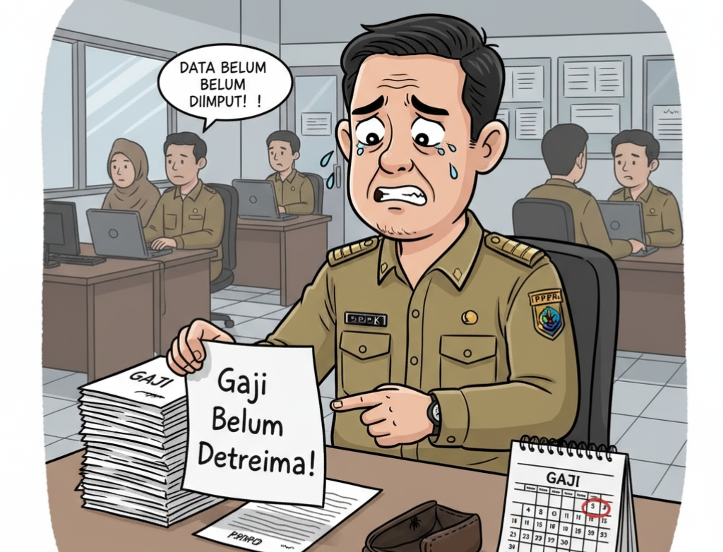 Ilustrasi Gaji PPPK belum dibayarkan akibat tidak diinput pihak Kecamatan | Foto : Zonamu/AI