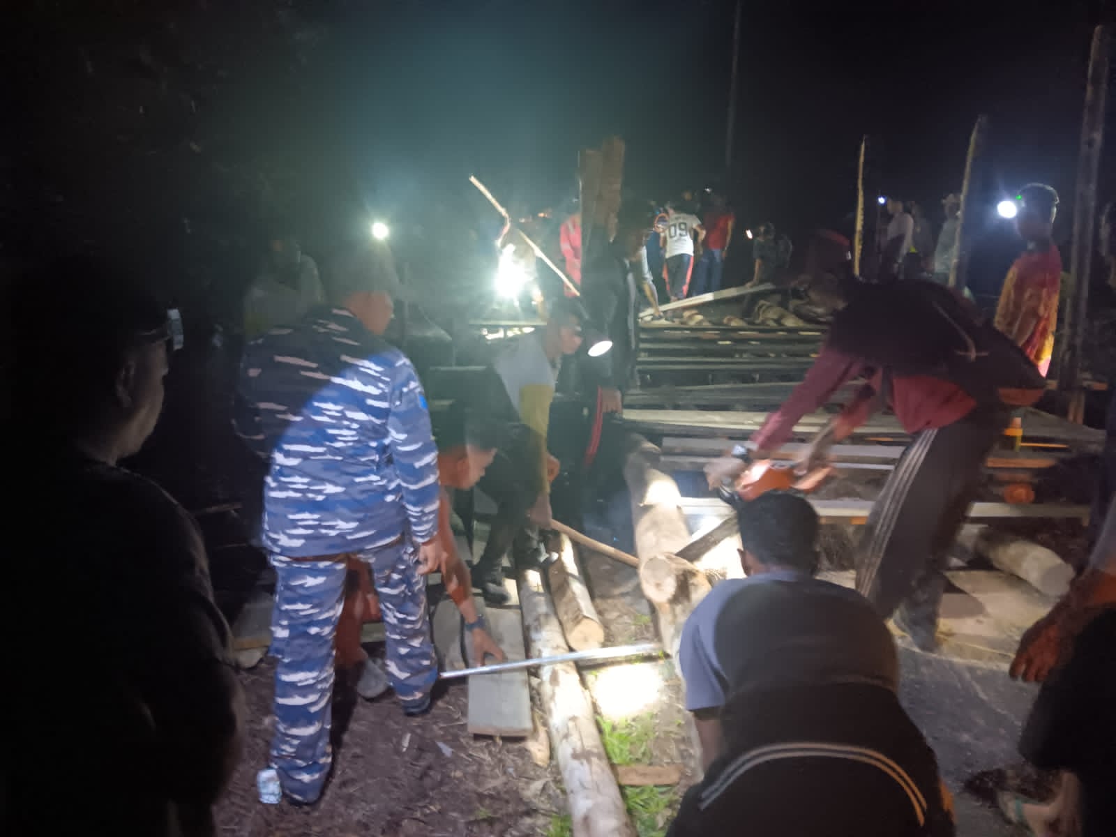 Pengerjaan yang dimulai pada pukul 21.00 WIB hingga pukul 02.00 dini hari itu dilakukan secara gotong royong oleh masyarakat, dibantu TNI-Polri dan BPBD Kabupaten Lingga.