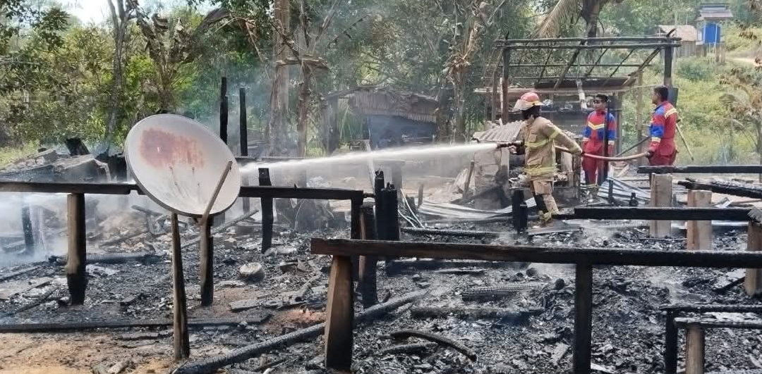 Kondisi rumah panggung habis terbakar (Foto : Zonamu/Damkar)