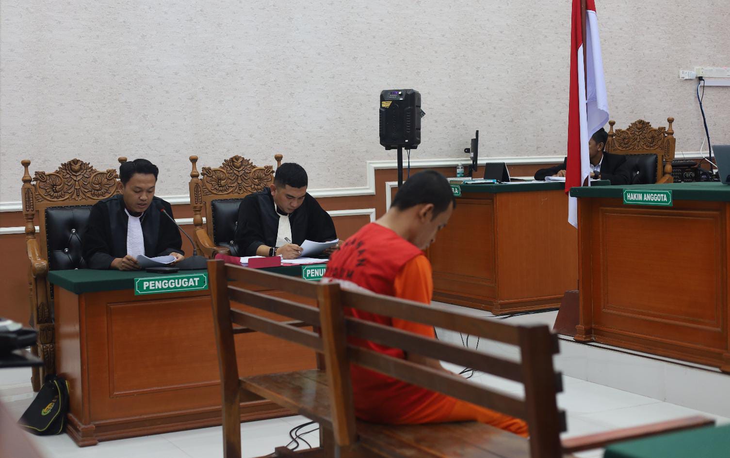 Jaksa Penuntut Umum Kejaksaan Negeri Karimun saat membacakan tuntutan hukuman mati terhadap terdakwa Doni alias Rajab dalam sidang perkara pembunuhan berencana anak di bawah umur di PN Tanjungbalai Karimun, Senin (22/12/2025) | Foto: Ami