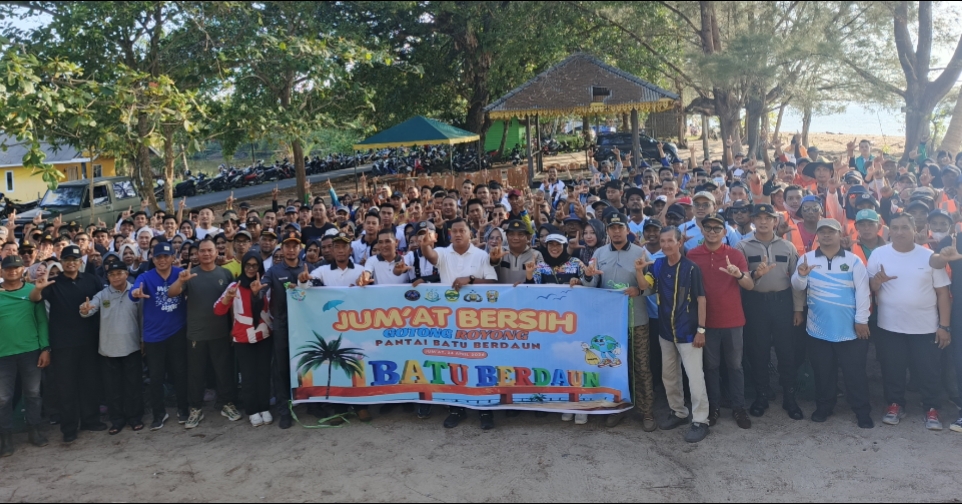 Lingga, Zonamu.com – Sekitar 700 orang turun tangan membersihkan wisata Pantai Batu Berdaun yang terletak di Desa Batu Berdaun Kecamatan Singkep, Kabupaten Lingga. Aksi gotong royong ini diinisiasi Kejaksaan Negeri Lingga bersama berbagai instansi dengan Tema “Jumat Bersih”.