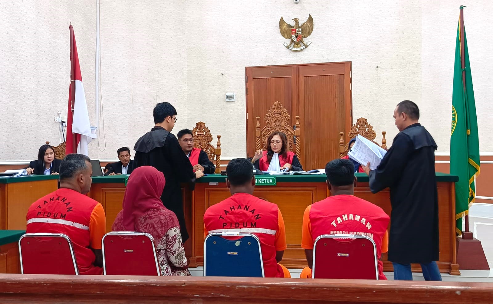 Suasana persidangan, agenda pembacaan tuntutan tiga terdakwa penyelundup 106 Kg narkoba jenis sabu | Foto: Rian